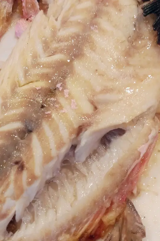 火候控制的相當有水準,輕輕一剝,魚皮整個就拔起來了,