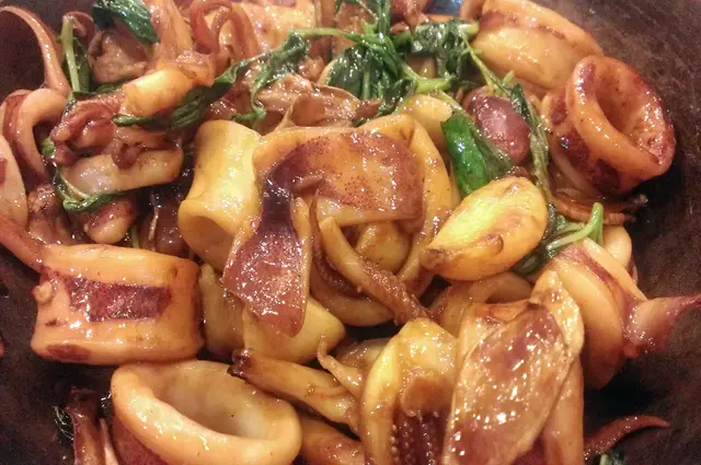 最後上的這道三杯透抽,打開鍋蓋就是一陣香氣撲鼻而來,
