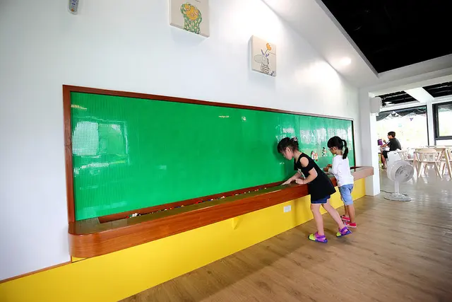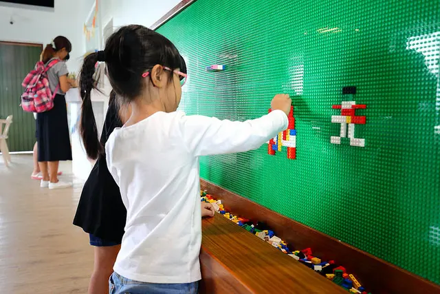 這裡另有一面積木牆,可以利用積木在牆上拚出圖案,小朋友通常都能在這待很久