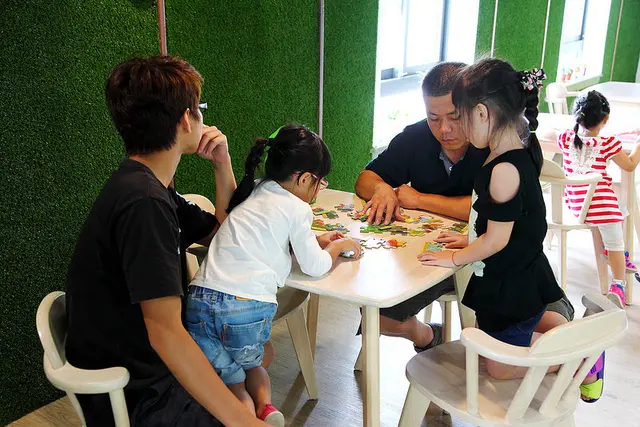 結果這些拼圖反而是爸爸們玩得比小朋友還開心XD