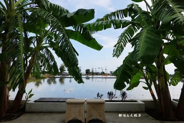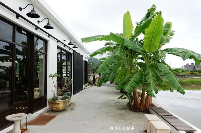 建築旁種植了芭蕉樹,很有度假感,周圍盡是田園風光,若是季節對了,可以見到一整片金黃色稻田喔