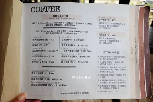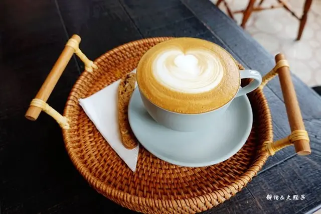 【蒔花咖啡】飲品冰的會比熱飲貴10元,點咖啡類飲品皆會附上一小片義大利杏仁脆餅,拿鐵拉花美美的,奶泡細緻綿密