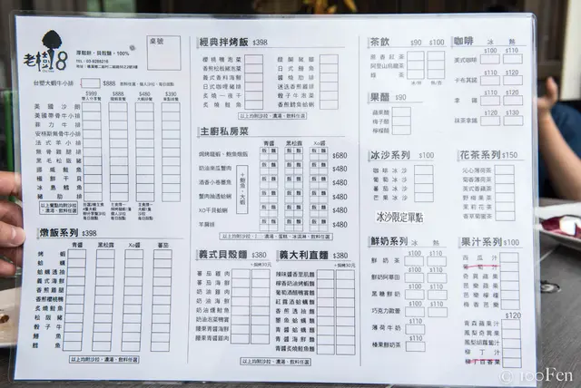 這邊菜單餐點非常多,我們一行四人看了好久才決定。第一面的餐點價位比較親切,有早午餐、甜點、飲料等等;第二面是西式主餐,價格就比較高一些。畫好單就可以給櫃檯並結帳