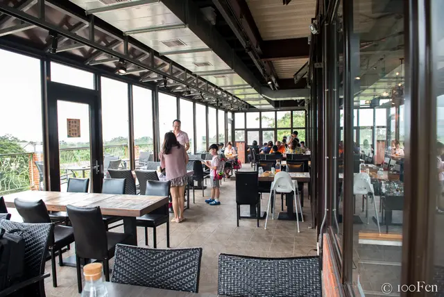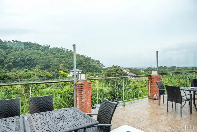 吃飽喝足,一定要到戶外遠眺一下風景。雖然當天雲層很厚飄點小雨,但置身在田野間的感覺令人感到平靜,微風吹來更是舒服。如果天氣好,推薦大家坐外面欣賞風景~