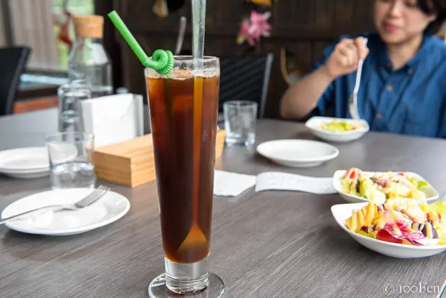 我點的經典拌烤飯,可以任選一杯飲料,於是點了冰的黑糖牛奶。算是中規中矩的一杯飲料