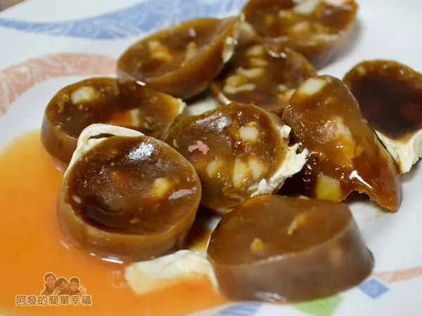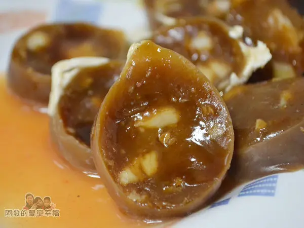而這的宜蘭粉腸,用碎豬皮取代碎豬肉,吃起來就如同果凍口感般的肉脂凍