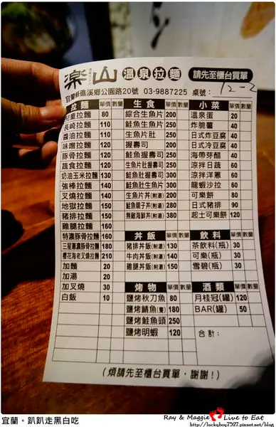 宜蘭二日遊, 其中一天中午來到礁溪的樂山溫泉拉麵二店