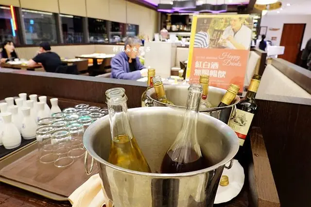 一進來就發現這好康的紅白酒無限暢飲,其實除了紅白酒之外,還有氣泡酒、啤酒及清酒等,很適合喜歡小酌或習慣以酒配餐的人,我們也小酌一杯祝慶入住人氣悅川酒店(開車不喝酒、未成年請勿飲酒)