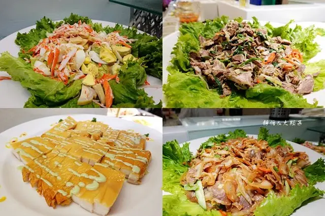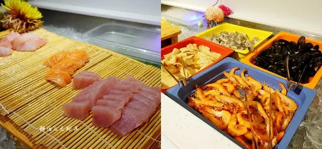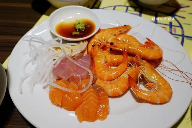 冷盤部分也很豐富,有鯊魚煙、蟹肉棒、鴨肉及豬頭皮等,另外還有生魚片以及鮮蝦、鮑魚片、小章魚等海鮮,整個超級新鮮的,光蝦子兒子就吃了好幾隻,然後鮭魚生魚片我們超愛的