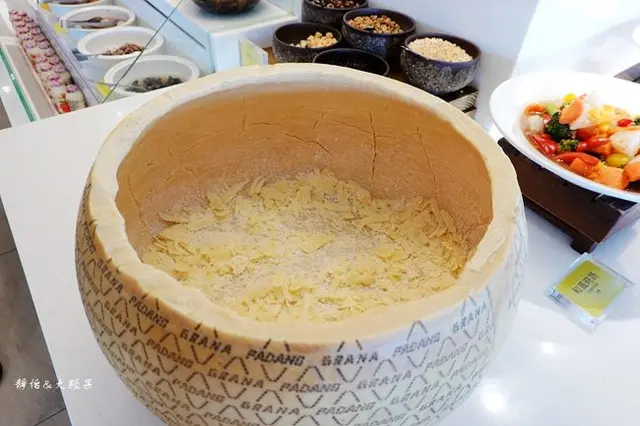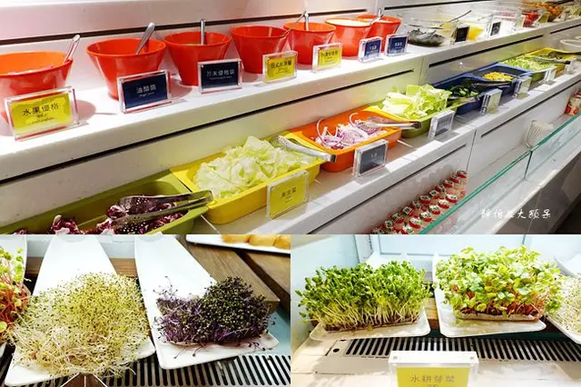 生菜沙拉的選擇也很多,然後也提供多種醬料讓大家依照個人喜好添加,最特別的就是水耕芽菜以及一大鍋的帕馬森起司了!