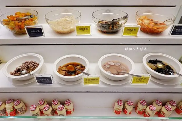 各式小菜也很吸引人,特別喜歡冰糖芋頭以及糖蜜金棗,另外冬菇燜烤麩、調味昆布以及滷水花生其實也都不錯喔,只不過吃得選擇太多,無法一一品嚐啊!