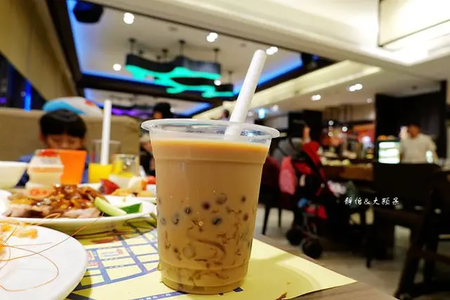 還有大人小孩很愛的珍珠奶茶耶,兒子一進來馬上就去裝了一杯,除了供應一般的珍珠外,還有寒天爆漿珍珠,有多種口味喔,另外也有粉條,這一杯甚麼都加了,不得不稱讚這奶茶很好喝,也不會過甜