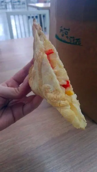 裡面包有滿滿的洋蔥跟甜椒還有乳酪,配上脆脆的餅皮超有披薩的感覺啦~好吃!