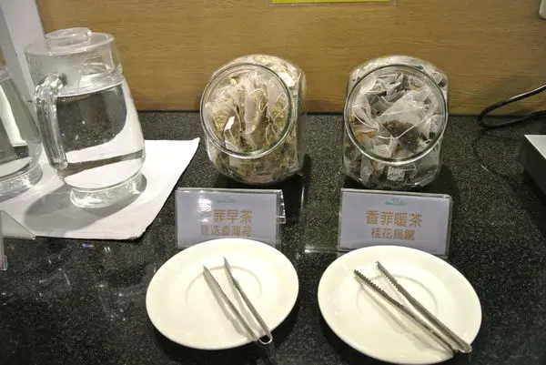 再來甜湯飲料區~有芒果汁、葡萄汁以及熱飲的迷迭香茶、桂花烏龍茶包可以泡還有咖啡~