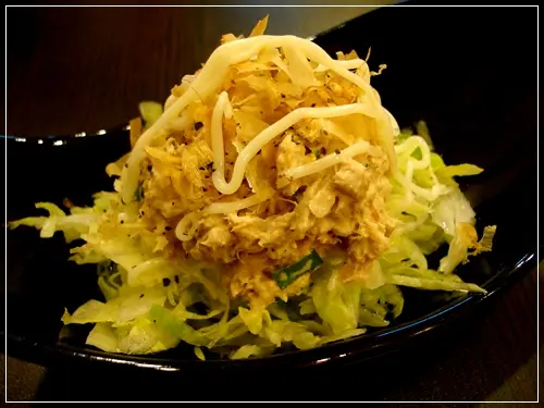 鮪魚沙拉:加了柴魚片的鮪魚沙拉