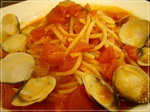茄汁蛤蠣義大利麵:新鮮番茄去熬煮的醬