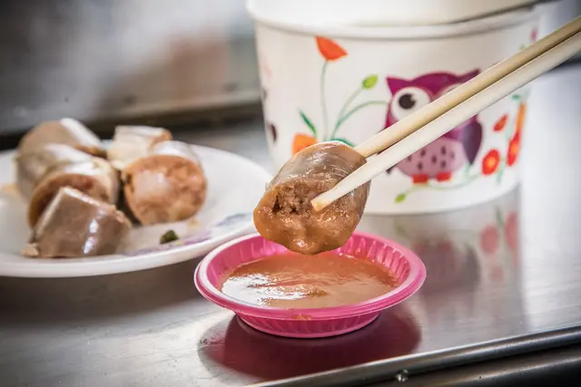 粉腸,也有人叫它粉泵,粉腸應該算是平價兩極的食物,我個人倒是滿喜歡的,一層薄膜灌進調味好的粉漿與碎肉,吃起來軟軟綿綿的,加點調料,很開胃呢