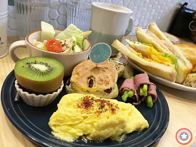 附有烤馬鈴薯 莎拉 以及半顆奇異果