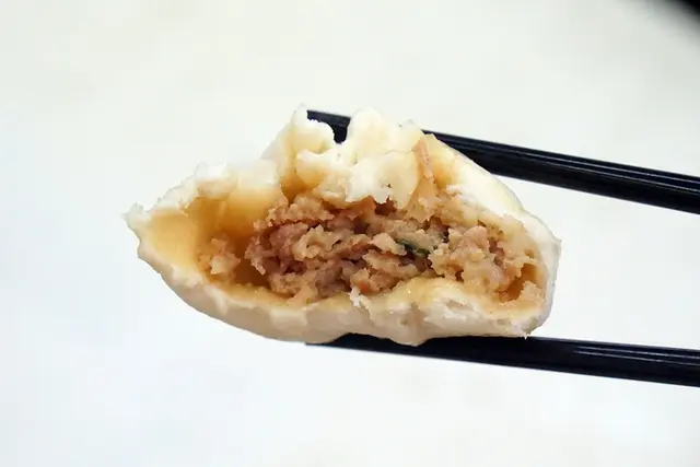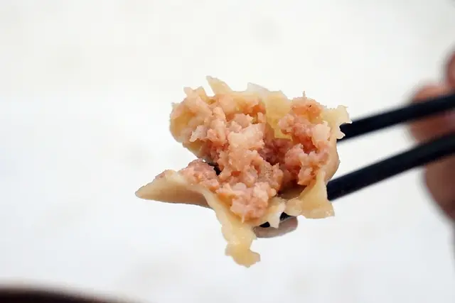 一口咬下,皮的口感帶些Q彈,是好吃的皮,肉餡絞得非常的細,比較沒有口感的些,沾點店家特調蒜醬還蠻不錯的
