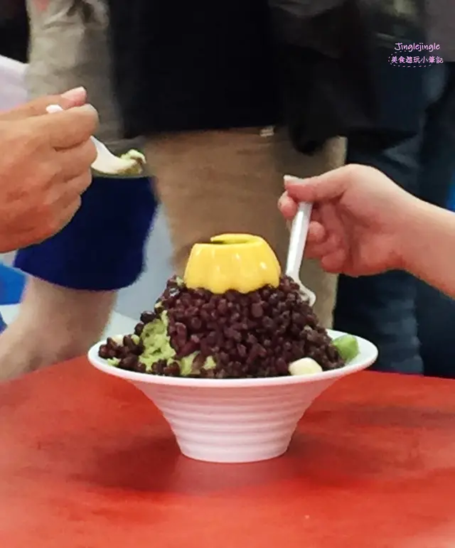 旁邊的叔叔阿姨在吃剉冰應該是抹茶紅豆之類的口味