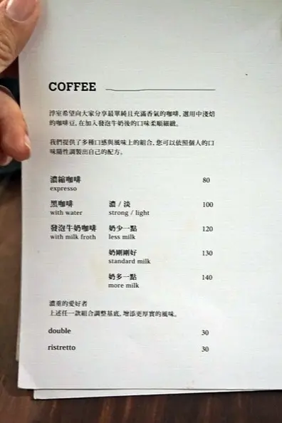 菜單 他們最吸引我的是高山茶,為什麼勒? 因為我覺得台灣的茶品非常好,甜點店真的不用一味賣國外的茶品或咖啡,好茶台灣真的很強啊,所以我毫不猶豫點了黎山高山茶和一個甜點