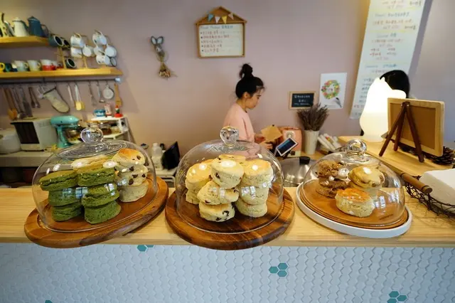 他們吧台上擺了他們自己做的司康 ,等下也要來吃一個^^