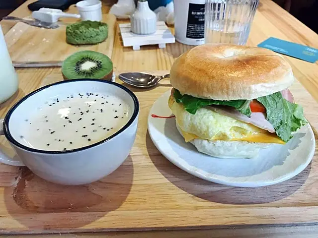 然後這個貝果堡附湯是230元,這是另一個朋友給我的照片,她說以230元來說,她覺得可以再豐富一點