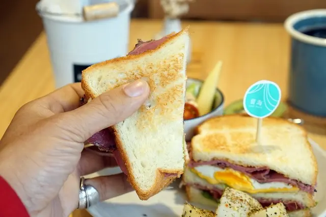 他們家的三明治好吃,是我喜歡的味道! 黑胡椒牛肉鹹香,再配上9分熟的蛋,整體味道非常的均衡,我覺得好吃的三明治就是要這樣啊,每個食材都要他該有的位置,主角味道又明確,這個三明治必點