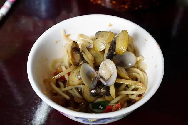 黃金蜆連湯汁一起加到炒麵裡超好吃啊 黃金蜆的鹹鮮甜和著炒麵一起入口超棒的! 我尬意!!! 我因為這樣以後來都點炒麵來吃XD
