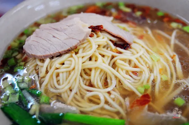 湯麵的配料跟乾麵都一樣,只是加入了大骨熬成的湯汁,