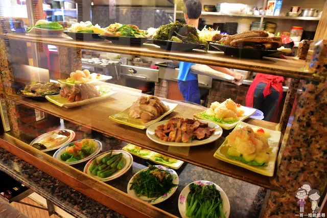 前半段是半開放的廚房,櫃檯上有著各式的小菜和港式點心,選擇相當的多樣。