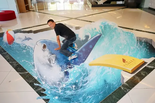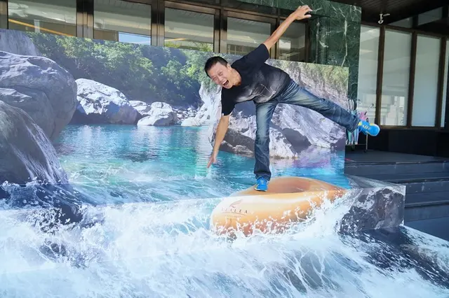 我們一到飯店裡就先到這個地方,為什麼勒~因為聽到介紹說就這是跳躍的曼波魚!!居然跟我一樣是跳躍ㄟXD 所以就先到這~仔細一看~那有我跳躍啊(驕傲的勒),後來飯店人員跟我說是躍動的曼波魚啦 是我聽錯了XD~沒關係 不管是跳躍還是躍動,這個看起來真的很像是真的ㄟ,而且人站上去更像唷 馬上來試試!