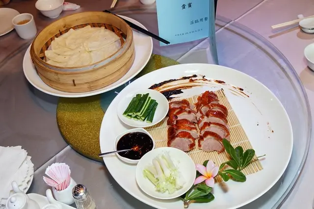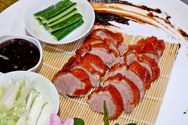 鄉親啊~這真的不得不說,這烤鴨真是好吃啊,皮烤的非常有酥脆感之外,還帶有一股混合著鴨肉本身油脂的特殊香氣,加上他們的沾醬帶著甘醇的風味,小黃瓜的清涼感、蔥段辛香滋味,吃得我不禁嘴角上揚,這套餐一人只要380元ㄟ...以這個價位來說真的很好ㄟ!這次力麗哲園飯店真的很有心啊