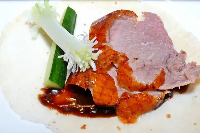 櫻桃鴨皮捲餅,一端上桌就傳來陣陣香氣啊~看起來好好吃喔,還有附上了荷葉餅、小黃瓜、蔥段以及烤鴨特調的醬汁^^