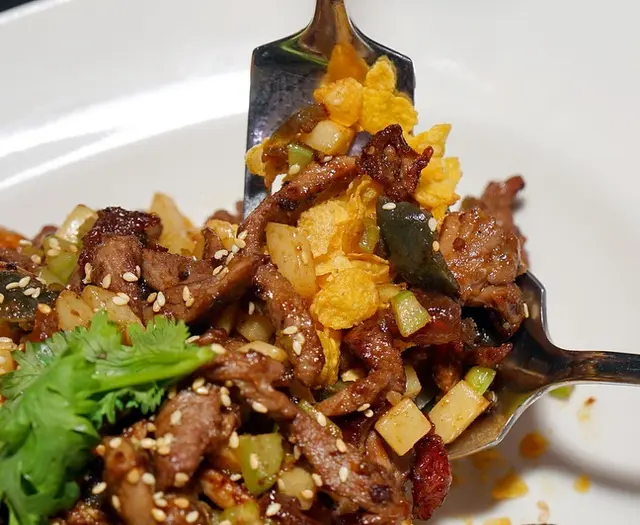 松花筍鴨絲,它們的鴨肉是處理的比較大,而且還加入筍塊及玉米脆片來增加口感,另外還有一樣秘密武器啊~我來吃吃看吧^^