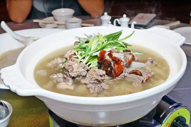 酸白菜鴨架鍋 他們的鴨架鍋跟別人不一樣,還加了了酸白菜一起熬煮,想像著鴨架上的鴨皮鴨肉的油脂甜味與酸白菜結合的味道,想著就讓人口水直流啊