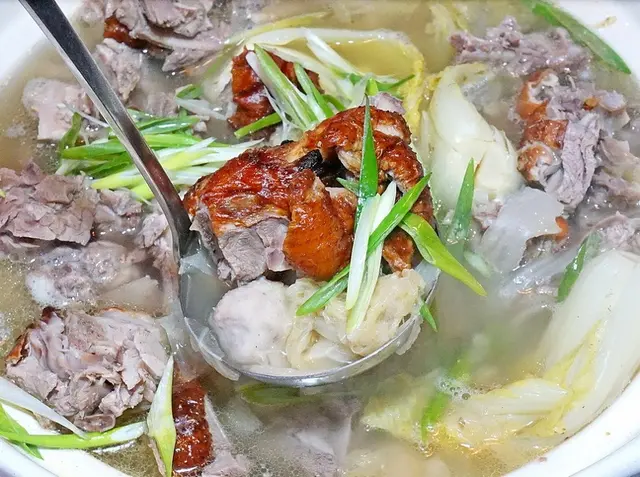 好喝! 湯頭帶著鴨肉的香氣之外,微酸甘醇的湯頭喝起來非常的順口,而且他們的酸白菜酸味很自然,我有點怕吃起來非常酸的酸白菜,吃到那種酸白菜我都覺得有點怪,這個湯我喜歡,而且裡面還有好多配料唷