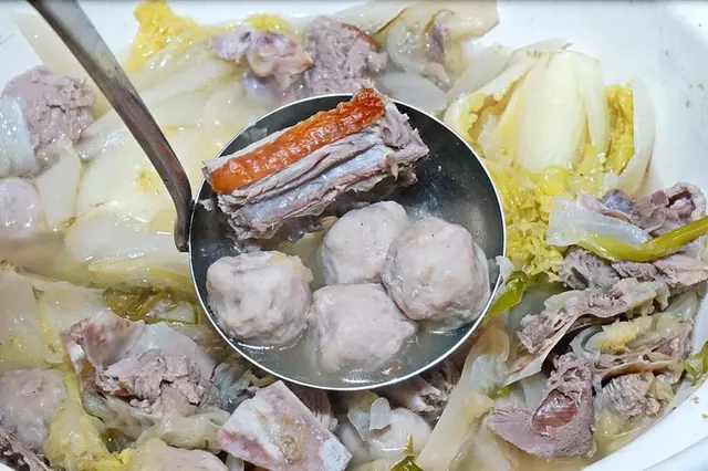 裡面除了有很多鴨架可以好好吃之外,還加了娃娃菜和鴨肉丸,真的不得不說它們的鴨肉丸超好吃,不但能吃到鴨肉的滋味之外,還能吃到芋頭的味道ㄟ,2個味道非常得搭啊,我好喜歡,我吃了不少呢,而且他們的份量真的不少ㄟ,我們一行人五男一女,其實吃到現在已經飽了啊