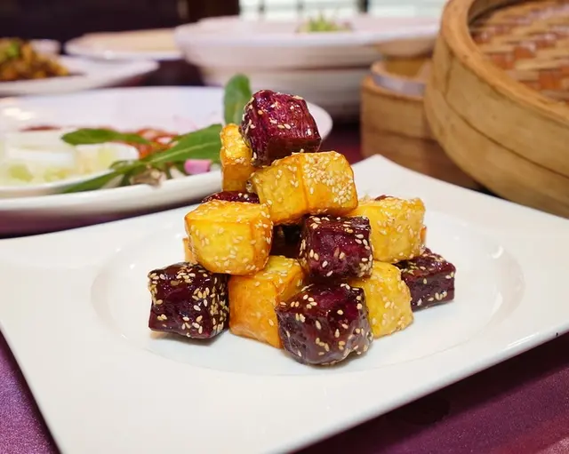紫金乾芋薯 我最喜歡吃地瓜拔絲了,他們的甜錪是這個我好開心^^ 而且還是用黃地瓜和芋頭蕃薯2種,皮好脆,香甜又好吃啊~這是最棒的結尾了^^Y
