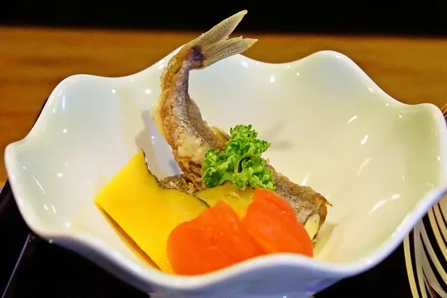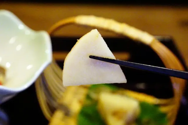 前田太太說,台灣的筍子與日本筍子來相比,台灣筍子不管是口感上和水嫩度而言,平均水準比日本還要好啊,所以岩城師傅使用日本傳統八方醬(柴魚高湯、醬油、味霖)來讓他入味。筍子一入口那清脆口感及自然舒服的滋味,微微的調味反而吃的到筍子的香氣