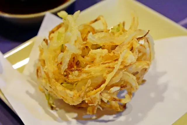 揚物 炸什錦天婦羅 裡面有洋蔥、蝦和鮮味,入口酥脆,搭配著天婦羅醬汁一起入口很是對味