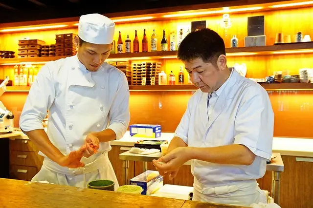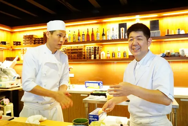 而岩城師傅來花蓮最重要的還是來傳授他的技藝給伊万里的主廚-楊宗儒師傅。也是伊万里的小老闆。之前就在日本的料理學校畢業之後就一直從事日本料理這個行業,也跟了日本大廚學習技藝,為了讓來伊萬里的客人吃到道地的日本料理,邀請日本老師來當客座老師,一直精進他本身的廚藝