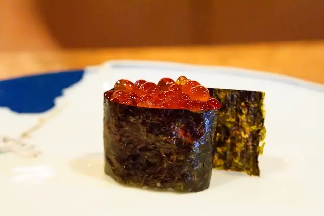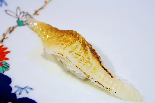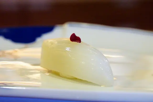 做為第一道的握壽司,絕大部分都是白肉魚開頭以清爽的鮮味當做起頭,讓我們的味蕾能夠仔細品嚐到食材本身的好滋味,但是我不得不說岩城師傅的握壽司的飯,我用筷子把握壽司輕鬆夾起,用魚片沾了醬油,這個過程中都不會覺得米飯要散掉的感覺,握壽司入口之後,飯的口感微軟,跟著魚料一起咀嚼,飯直接散開跟著魚料滑進喉嚨,手拿不散,入口又能有這樣的口感,板前師傅的手藝真的是厲害