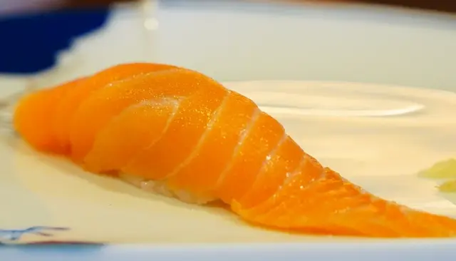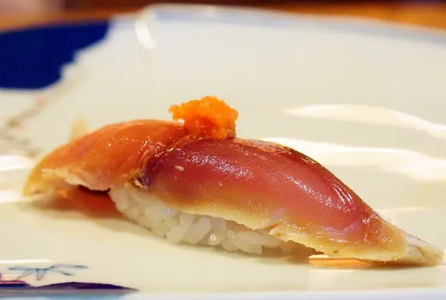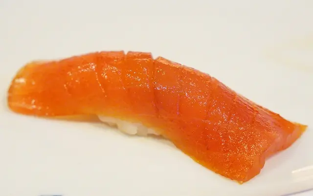 鮪魚 這是使用醬油醃漬 吃起來口感上變得黏稠些,味道不是鹹,鮪魚味道更有深度!