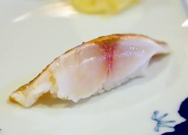 黃雞魚 好吃ㄟ~岩城師傅給他一點點輕微的炙燒,口感帶脆且油脂鮮味顯現在舌上,好吃!