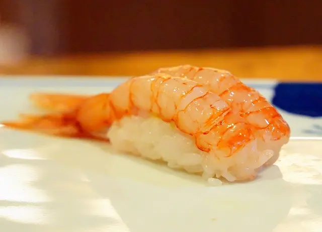 本港胭脂蝦 蝦子經過咀嚼所產生微黏稠的鮮甜味真的是好得沒話之外,握壽司的米飯散在嘴中口感很好啊,我吃完之後岩城師傅才說這是楊師傅他握的,口感上沒有態窩的落差ㄟ!可見他的技藝也是很厲害啊