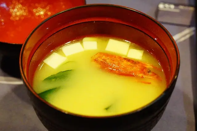 蝦頭味噌湯 微甜關西風調味的味噌湯,加上鮮味十足的蝦頭 完美的結束!