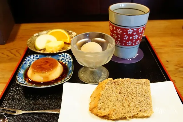 最後超豐富的甜點啊! 戚風蛋糕 焦糖布丁 茶香冰淇淋 水果和阿薩姆紅茶 真的好多樣喔@@