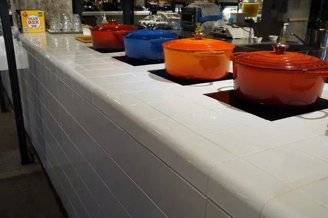 他們的吧台 我第一次看到圓弧的磁磚ㄟ 原來這是找荷蘭專做這樣吧台的設計師訂製的 訂製時間長達好幾個月 做好之後才從荷蘭運到台灣 超"稿工"啊