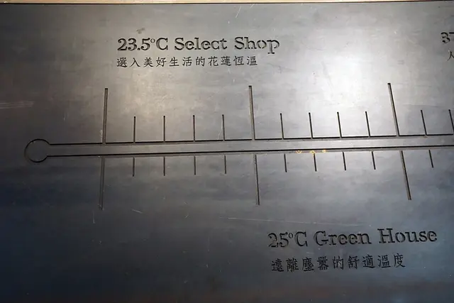 23.5度是花蓮的年均溫 25度是溫室的溫度 恆好設計了這個溫度計 讓來花蓮的客人來感受花蓮的美好